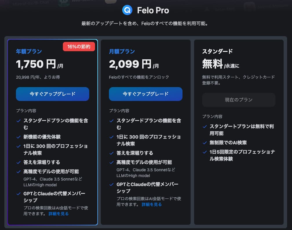 | プロフェッショナルプラン | $14.99 | 1日300回のプロ検索、高精度AIモデルの利用 |